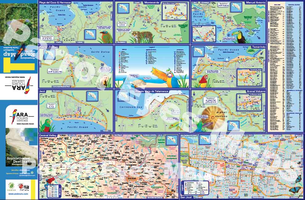 Mapa de Ara Tours con mapas de destino, Valle Central y San José